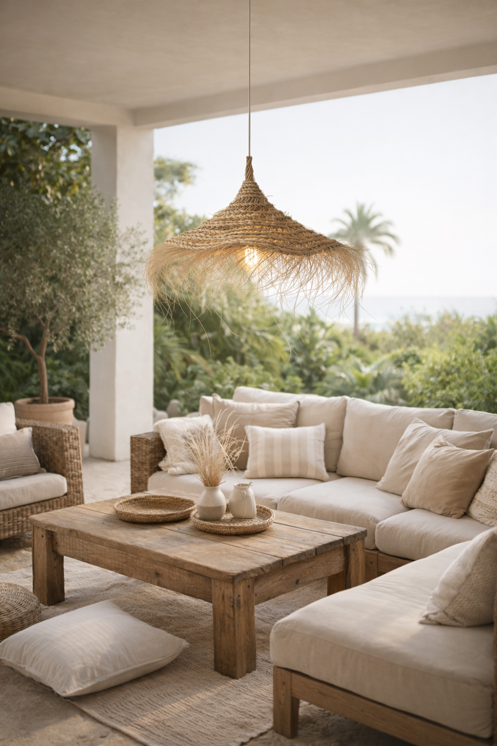 Pour réussir votre décoration d’intérieur, associez ce lustre à des tapis en jute ou en jonc de mer pour un rappel de matières. Vous pouvez aussi ajouter des meubles en bois clair, comme le chêne ou le frêne, pour accentuer l’esprit “nature”. Pour un contraste plus moderne et audacieux, n’hésitez pas à l’installer dans une pièce aux murs colorés (bleu pétrole, vert forêt ou terracotta) ; la fibre naturelle ressortira magnifiquement. Cela crée un espace harmonieux, équilibré et plein de cachet.