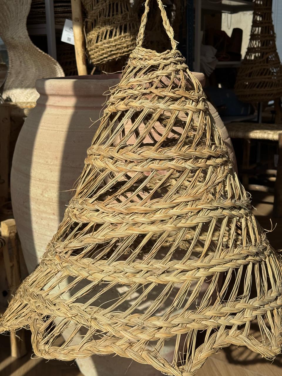 Ce Lustre Luminaire en Rotin Forme Cloche est fabriqué à la main avec du rotin naturel soigneusement sélectionné. Il diffuse une lumière douce et chaleureuse qui traverse délicatement les fibres tressées. Cette ambiance tamisée transforme instantanément votre pièce en un véritable havre de paix. Son design unique, à la fois organique et structuré, s’intègre facilement dans un décor bohème, scandinave ou contemporain. De plus, chaque pièce est légèrement différente grâce aux variations de la fibre. Cela met en valeur le travail artisanal minutieux et l’authenticité du matériau naturel en Tunisie.