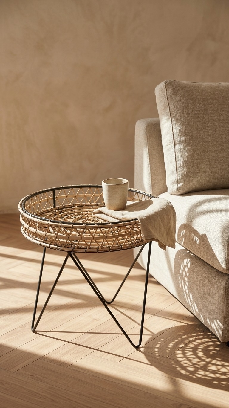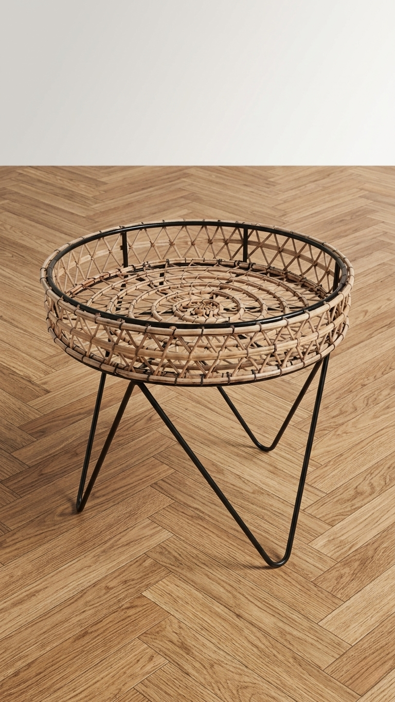 La table d’appoint bohème en rotin est bien plus qu’un simple meuble fonctionnel. Dans un salon, elle sert de support léger pour vos lectures ou une tasse de café. Par ailleurs, sa structure en métal noir contraste magnifiquement avec le tressage organique du plateau, offrant un rendu visuel graphique et aéré.